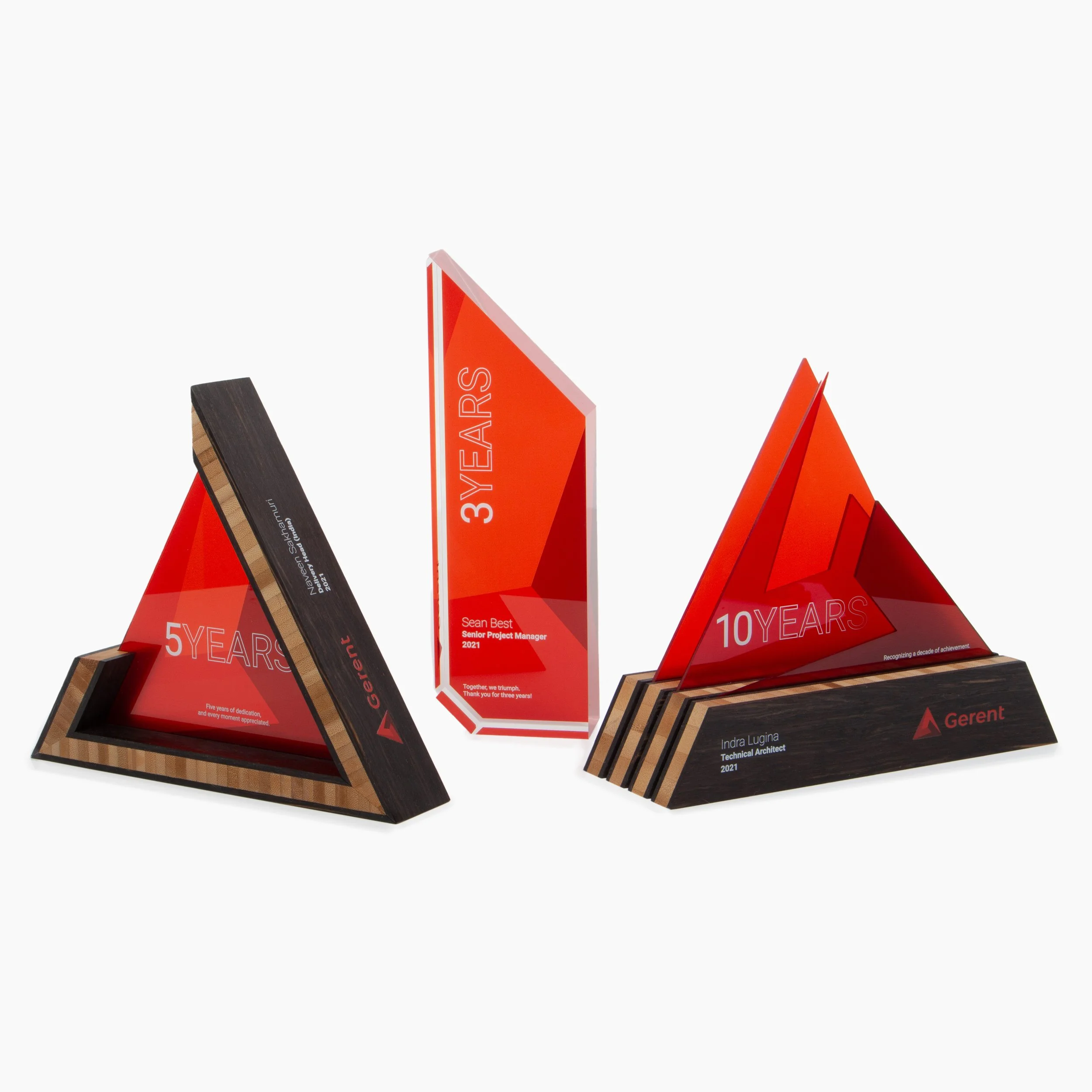 We custom designed and handcrafted these unique pyramid awards specifically for The Gathering Awards ceremony. We designed the awards to be a modern interpretation of the classic pyramid shape.
